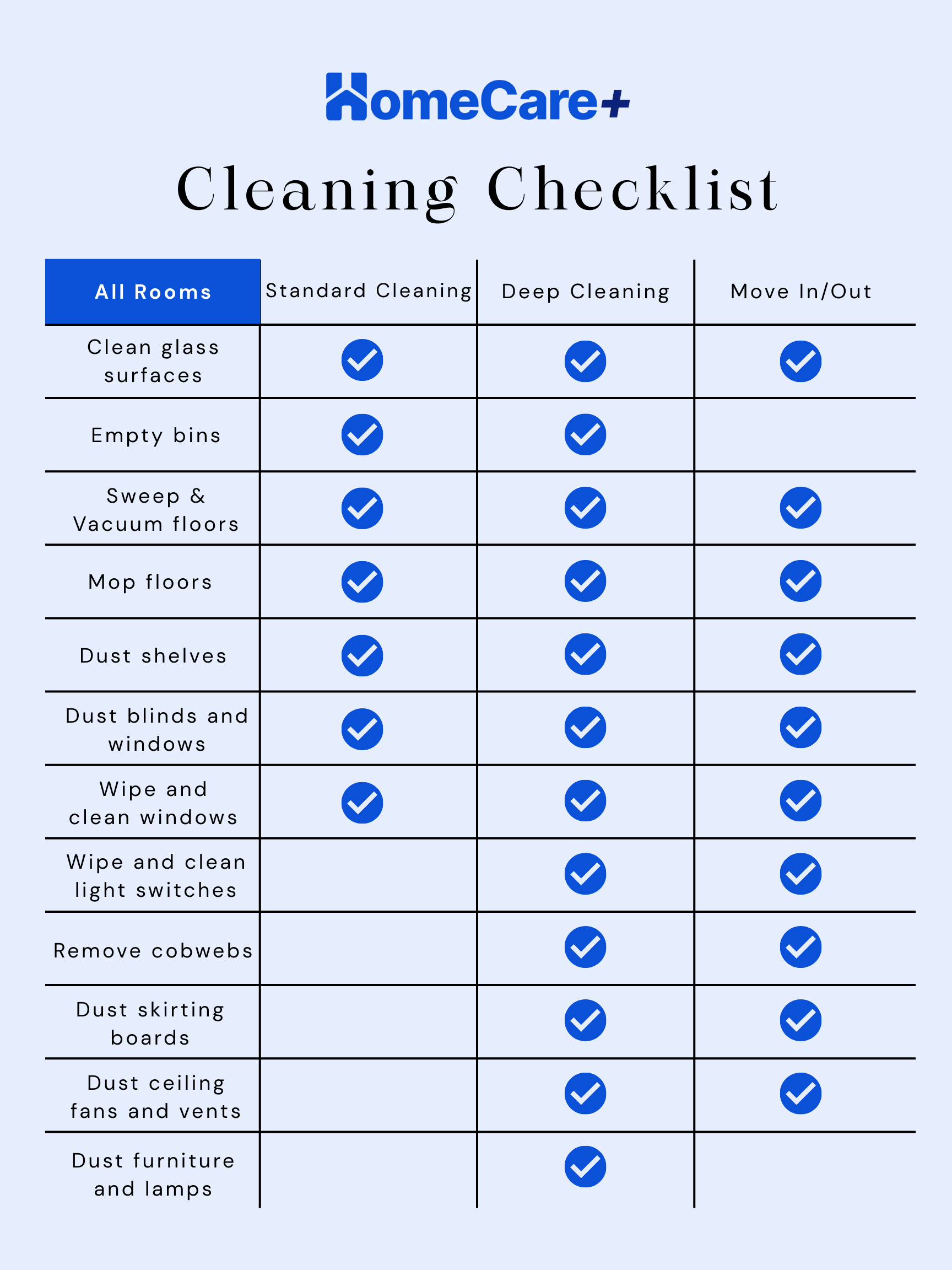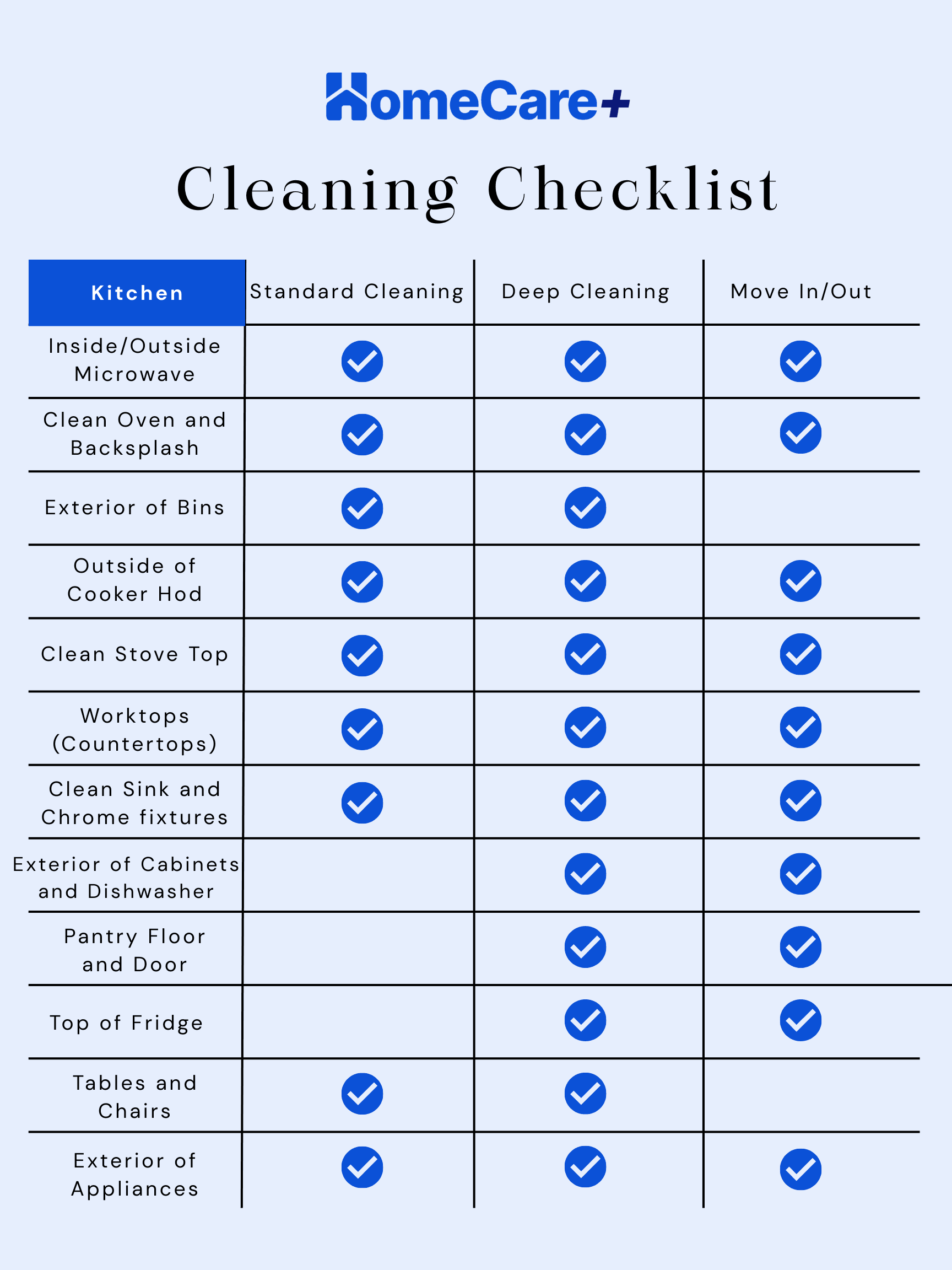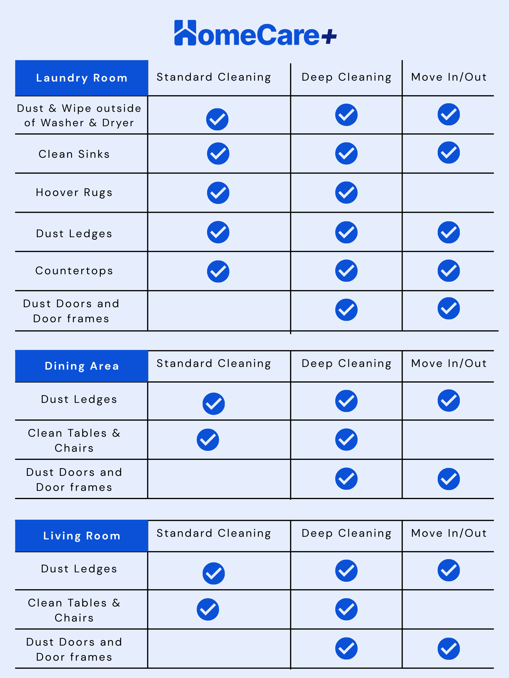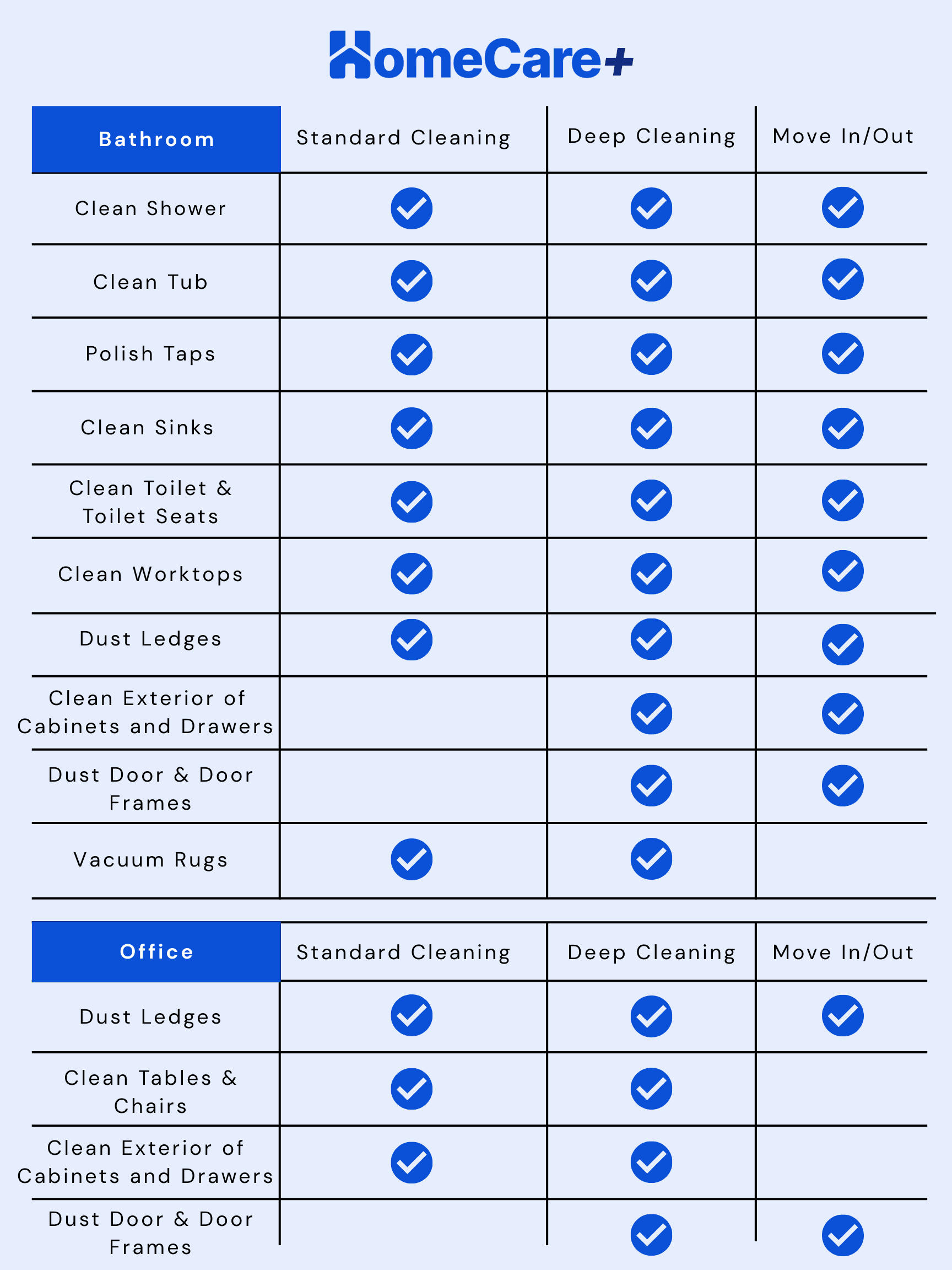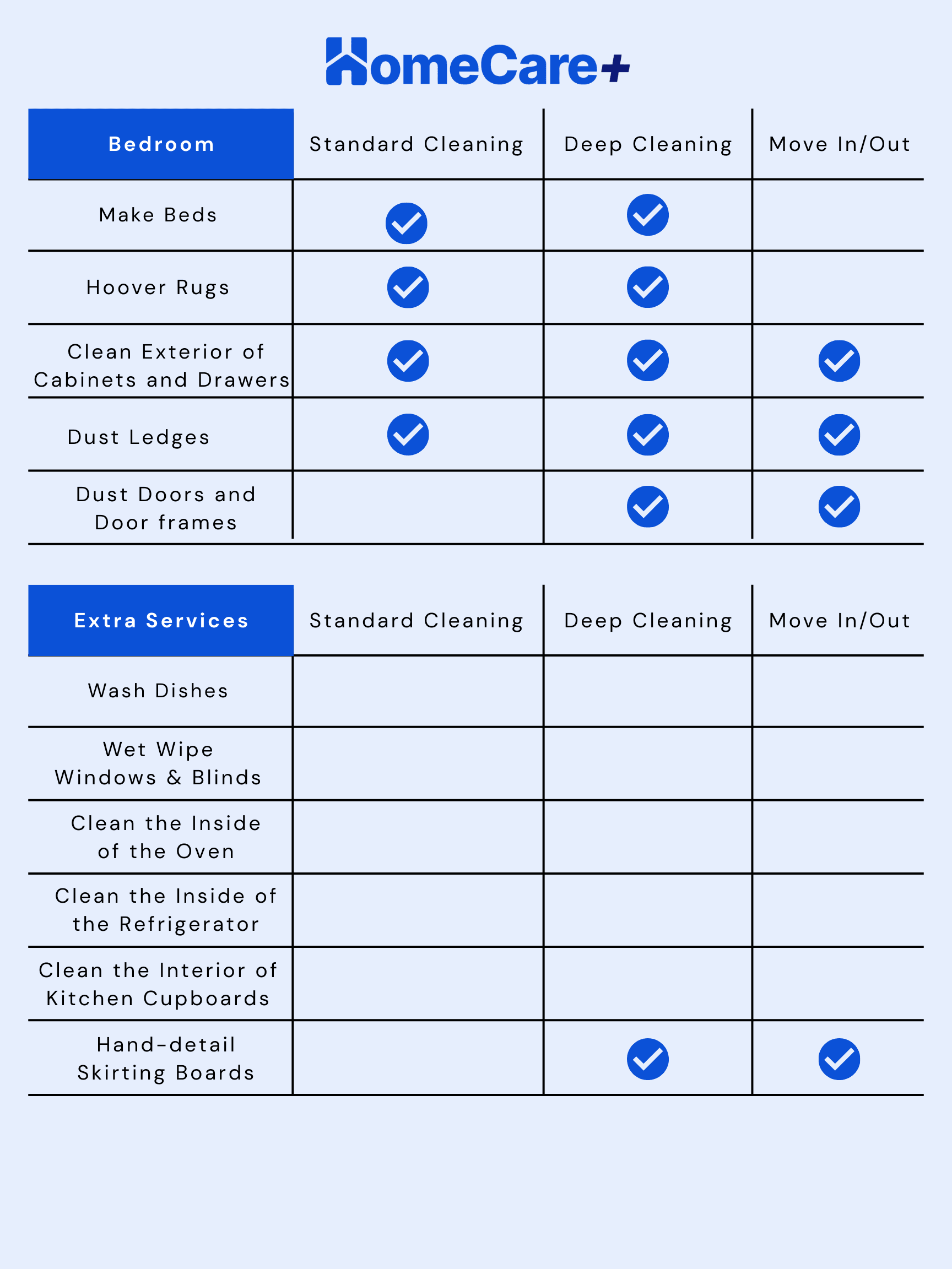 Below are the checklists of what we do for each service